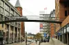 Gangbroer mellom byggene sikrer framkommelighet i Holtzhafen - selv i flomsituasjoner.