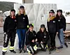 Blide jenter foran egenprodusert sandwichelement. F.v: Marianne Gjørtz, Ingrid Rosendal, Anna Lovinda Hulbak, Marie Garborg Haaland, Guro Eek og Hanna Landmark.