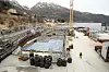 2:TØRRDOKK. Grunnlaget for fôrflåter og flytekaier legges i denne tørrdokken på land. Her bygges fundamentene klare før de sjøsettes og ferdigstilles ved kai.
