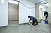 8:FLISLEGGING. Mange håndverkere er i arbeid for å bygge fôrflåtene. Her jobber Janus Fjodanavs med flislegging. Han er innleid fra Slettestøl Bygg.