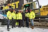 Daglig leder i Betonmast Romerike AS, Stein Erik Pedersen og hans team, med styreleder Borger Borgenhaug fra Axer Eiendom AS bak spakene i gravemaskinen.Foto: Axel Pritzbauer, Axer Eiendom