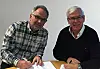 Kontrakten er en samspillskontrakt. Tom Søgård i GOBB (t,v.) og Nils Raymond Laeskogen i Betonmast Toten ved signeringen.