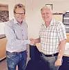 Fra kontraktsinngåelsen; Svein Karlsen fra Betonmast (t.v.) og Jon Magne Elshaug fra Trondos. (