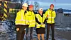 Prosjektleder i Trondheim Kommune Morten Marøy (f.v.), prosjektleder i Betonmast Trøndelag Tore Hinsverk, finansminister Siv Jensen og daglig leder i Betonmast Trøndelag Tom Utvik på byggeplassen til nye Lade skole.