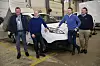 Sammen med prosjektansvarlig Jonas Høkeli i Lafinto, varebilsjef Anders Sandvold i Nissan og Vidar Strøm i Avinor, viser han stolt fram den første e-NV200 som er bygd om i Norge.