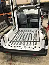 – Kunden bestiller varebilen som vanlig hos en forhandler. Hvis de ønsker ombygging, sendes bilen hittil oss. Vi rensker bilen innvendig og utvendig, og skjærer bort rommet bak med vinkelsliper. Deretter bearbeider vi kuttflatene, monterer ny bunnramme og løfter på plass et nytt aluminiumsplan. Bilen kan komme både med og uten tippefunksjopn, sier Høkeli.