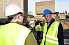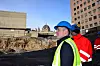 Kommunal- og moderniseringsminister Jan Tore Sanner møtte Statsbygg-direktør Harald Nikolaisen i rivegropa hvor S-blokka en gang stod.