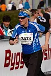 - Løpet er desidert tyngst. Dette er fjerde gang jeg er med, rennet har jeg deltatt i ca 15 ganger og i rittet fire - fem ganger. I forhold til andre jeg kan sammenlikne meg med, er jeg dårligst på sykkel. I år løp jeg på 2.04 i klassen 60 - 64 år, forteller Arne Skjelle, adm. dir. i Byggevareindustriens Forening. Han løp på samme tid i fjor, men løypa er ca 500 meter lenger i år.