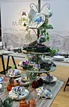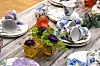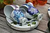 Blomster-Finn har selv valgt ut sine favoritter og overført dem til porselen. Finns Hage er matchende kopp og asjett med frodige hageblomster og gullkanter.