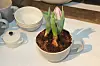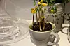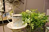 Bli inspirert til sommerens hageliv. Her er en romslig tekopp fra Le Creuset brukt som blomsterpotte. (Foto: Svanhild Blakstad)
