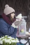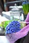 Du kan blant annet pynte med duse og myke farger sammen med nydelig himmelblå Muscari. Den sarte blomsten med sine små og yndige perleblomster er fantastisk vakker når den titter frem fra en rustikk potte eller den kritthvite snøen.