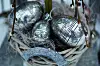 Sett frem en gammel og slitt stol, en trekasse eller et bord til å lage stilfulle sammensetninger på. Pottene kan gjerne være i grå eller brune nyanser. Kurv i de samme fargene er også fint. Annet tilbehør kan være egg i forskjellige varianter. Nostalgiske, i messing eller prikkete. Noen rufsete påskekyllinger og rustikke lykter passer også fint inn.