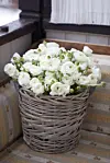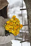 Du kan også kjøpe dem i bunter og knyte blomstene sammen med jutetråd. Sett dem i en vase eller bruk bunten som den er med jutetråden rundt. Så lenge de ligger kjølig ute vil de holde seg fine en stund selv uten vann.