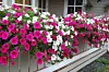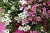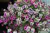 Calibrachoa. Mindre blomster en petunia, men like tett og fin. Trenger mye gjødsel, og bør plasseres i sol til halvskygge.