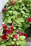 Superpetunia (Petunia hybrid). Tette og fine ampelplanter som bør plasseres i sol til halvskygge. Vokser fort og trenger derfor en del gjødsel gjennom sesongen.Lofus. Stor og hengene med store vinrøde blomster. Pass på at planten for nok gjødsel. Trives godt i sol til halvskygge.