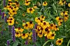 STAUDEPRAKT: Gul Solbrud (Helenium) med spir av anis-isop (Agastache) foran. Disse to komplementerer hverandre både i farge og vokseform. Solbrud blomstrer fra midten av juni til oktober. Foto: Foto: OBP