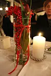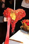 Hjerte dekorert med Ilex-bær og en Paphiopedilum-orkidé som har blitt "forhøyet" med greiner av sibirkornell. (Foto: Dorte Finstad, Vea)