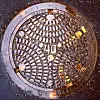 Fotograf Caroline Roka har laget en bok om kumlokk, som hun betegner som gatas mynter. At kumlokkene også kan danse, går frem av bildet som ble tatt under et kraftig regnvær i Oslo høsten 2014. (Foto: Svanhild Blakstad)