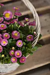 Dersom nattefrosten blir i tøffeste laget, er det bare å flytte blomstene inn i entreen for natten. Primula og tusenfryd tåler også noe frost, og kan fint settes i krukker på trappen eller terrassen.