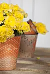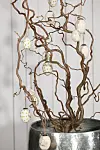 Pynt krukkene med noen kvister fra hagen eller vrihassel, som du får kjøpt i blomsterforretninger. Vrihasselen kan pyntes med dekorative egg eller ferske blomster, for eksempel narsiss.