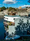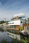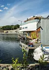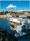 En Kebony-dekket villa i Nacka kommune utenfor Stockholm i Sverige er noe litt utenom det vanlige. Det tre etasjer høye huset flyter nemlig på vannet.