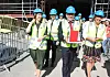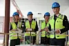 Veidekke bygger Domus Juridica på Tullinkvartalet. Fra venstre prosjekteringsleder Hans-Ove Liaaen Hotvedt, prosjektingeniør trainee Jens Ola Wien, driftsleder Gunnar Bråthen og regiondirektør Hans Olav Sørlie. Foto: Svanhild Blakstad