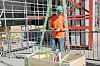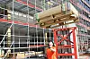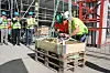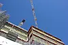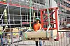 Vanligvis legges grunnsteiner ned i bakken, men på dette prosjektet ble den lagt i en kasse, stroppet fast og den heist opp i lufta av Veidekkes kranfører.