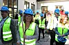 Hele forsamlingen fikk deretter på seg verneutstyr og tok turen over til byggeplassen, for å overvære selve grunnsteinsnedleggelsen. Grunnsteinen, som ikke er en stein, men en blank firkantet boks, ble fylt med ulike gjenstander, alt fra Norges Lover, til Tullinløkkas reguleringsplan og FNs barnekonvensjon fra de involverte aktørene.