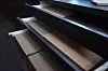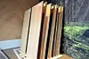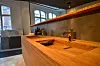 Moelven har også fliser og paneler i termoask i butikken, varmebehandlet tre som kan brukes i våtrom.