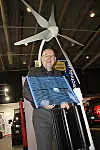 Morten Meier, som er daglig leder i Sun-Net AS samt salgs- og markedssjef i Skarpnes, forteller om stor interesse for takstein-produktene. Ikke minst er mange interesserte i denne prototypen av en dobbelkrum takstein med innebygde solceller.