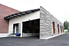 For å gi inntrykk av å ha satt opp en mindre bygg en det egentlig er, har de valgt å gi en del av fasaden en bølgeutforming. På den ene veggen har de også benyttet seg av en rå betongvegg med et enkelt mønster og vinduskarmer i rustet stål. Dette gir et spennende inntrykk for bilistene som kommer østfra.