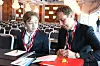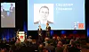 Her har 13-årige Magnus Chramer nettopp introdusert BNL-sjef Jon Sandnes som første taler på Byggedagene. Foto: Svanhild Blakstad
