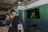 UTSTILLERBESØK: En av oppgavene til ungdomsskoleeleven Magnus Chramer på Byggedagene er å kåre beste stand. Her avlegger han en av de 36 utstillerne et besøk. Foto: Svanhild Blakstad