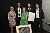 Fay-Nina Mjøen (fra venstre), Anders Nygård , Nina Harviken, Knut Moe og Knut Hafskjold i Boligpartner vant Årets Trebyggeri 2021.