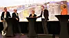 Nestleder i Høyre, Henrik Asheim, administrerende direktør i NHO, Ole Erik Almlid, arbeids- og inkluderingsminister Marte Mjøs Persen (Ap) og Skanska-leder Ståle Rød deltok i debatt. Christine Holtan Bøgh fra EBA var ordstyrer. LOs nestleder Trude Tinnlund skulle også vært med, men var forhindret fra å delta. Foto: Arve Brekkhus