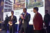Sjefredaktør Arve Brekkhus i Byggeindustrien (fra venstre), administrerende direktør Audun Øvrum i Treteknisk og konferansier Markus Neby.