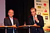 Jan Tore Sanner (til venstre) og Jonas Gahr Støre i debatt under Byggedagene 2015.