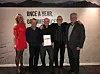 Bygger’n Teigen kåret til Årets HIBA HUS forhandler. F.v: Kjededirektør Christine Holm, Lars Trygve Tveit, Nils Olav Støle, Kjell Magne Haugland og teknisk sjef i HIBA HUS Eivind Hansen.Foto: Bygger’n