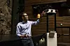 Digital mapping manager Jose Luis Gil Yepes i Geograf styrer en to meter høy skannerobot på hjul med stø hånd gjennom Operaens mange irrganger.