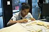 Hun deltar på sommerskolen for andre år på rad og er i full sving med kapping og montering av materialer til minihuset når Byggeindustrien er innom Sommerskolen denne fredag formiddagen.