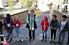 Ordfører Marianne Borgen og elever fra Lakkegata skole gjør seg klar til snorklipping på Sundtbroa. Foto: Svanhild Blakstad