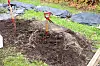 Legg kvister på ugressfri bar jord for å få god lufttilgang og god kontaktflate for de organismer som etter hvert blir aktive i komposten.