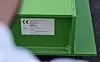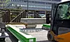 To grønne HSQ-bjelker laget med oppsirkulert maritimt stål ligger nå klare på ombrukssentralen på Økern i Oslo. Foto: Statsbygg