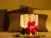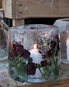 Hageblogger Anne Havåg Holter-Hovind i Moseplassen lager sine egne islykter og dekorerer utendørs gjennom hele vinteren. Her har hun brukt mørkerøde roser, men julestjerner går også fint. Det er også en fin måte å gjenbruke blomster og planter på. Foto: Moseplassen