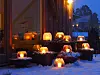Hageblogger Anne Havåg Holter-Hovind i Moseplassen lager sine egne islykter og dekorerer utendørs gjennom hele vinteren. Foto: Moseplassen