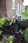 Spade, greip og rake har kortere skaft enn tradisjonelle redskap, og tar derfor mindre plass, er enklere å transportere og praktiske når man skal komme til i opphøyde bed eller pallekarmer.
