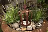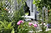 BLOMSTRER HELE SOMMEREN: Bildet er fra Marit Næss Jørgensens egen hage i Sandefjord, hvor det er blomsterflor gjennom hele sommeren. Fra venstre sees en liten hekk av Buxbom som omkranser en liten dam. Deretter er det en lang hekk av Hosta. Til venstre bak Hostahekken står en Japansk Blodlønn, og til høyre for den er det roser i ulike høyder. Det lille treeet til høyre i bildet er en Selje (Salix Helvetica), og de høye hvite spirene er ormedruer som er iferd med å springe ut. Langsmed stenmuren i bakkant er det fra venstre en høy klatrerose, på muren bak og rundt det rustne lysthuset klatrer det Eføy og til høyre for lysthuset er det nok en rose. Bildet er tatt midtsommer, i overgang til høysommer. Foto: Hageplanlegging.no