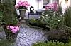Hagedelen består av en steinlagt plass med lysthus i armert jern, en egen plass med urtehage i krukker og en trivelig rund vanndam. I tillegg har jeg flere urner med trær, samt en sittebenk.