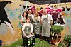 Flere av de midlertidige veggene er dekorert med grafittikunst, og innenfor befinner det seg både en kaffebar, en lun oase av blomster og plantevekster, og en kjøkkenhage.