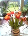 I mangel av vårtegn i hagen ble det fargerike tulipaner i vinduskarmen for å løfte vårstemningen. (Foto: Antje Jirmann)